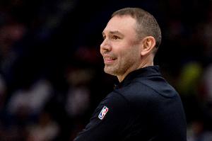 阿德?tīng)柭骸辈?,?shí)際上,這很艱難,因?yàn)樵谏习雸?chǎng)的某些時(shí)候,他會(huì)放棄防守讓對(duì)手得分,你是對(duì)的,就是因?yàn)槟莻€(gè)原因,而在下半場(chǎng)他在有球防守時(shí)極具侵略性,你知道的,對(duì)手在logo區(qū)、罰球線(xiàn)附近打了很多分球戰(zhàn)術(shù)。我的意思是,他們一直在跑戰(zhàn)術(shù),而他積極地去防守球并賠上了一些犯規(guī),但這是件好事。我的意思是,你希望整場(chǎng)比賽都這樣防守,但當(dāng)一個(gè)球員出場(chǎng)時(shí)間像他這么多時(shí),你就不能一直這么做。所以,我認(rèn)為這很好,允許他在下半場(chǎng)保持侵略性,在籃下抓住機(jī)會(huì)去垂直起跳或封蓋投籃,當(dāng)我們的防守崩潰或者小個(gè)子被過(guò)掉的時(shí)候,這就是你需要他做的。對(duì)于約基奇來(lái)說(shuō)這也是一場(chǎng)整體表現(xiàn)極佳的比賽。我的意思是,25分、15個(gè)籃板、8次助攻,你知道,他最近狀態(tài)一直很好,伙計(jì)。他正在打出統(tǒng)治力的比賽。”