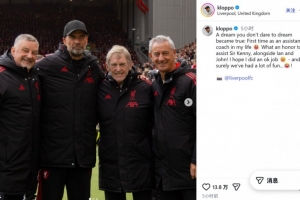 在社交媒體上,克洛普曬出了自己和達格利什、伊恩·拉什以及約翰·阿爾德里奇等3名利物浦傳奇的合影,他寫道:一個從不敢奢望的夢想成真了,這是我人生中第一次擔任助教。能夠與伊恩·拉什和約翰·阿爾德里奇一起協(xié)助達格利什爵士,我感到非常榮幸!我希望我的表現(xiàn)還算不錯。當然,我們在一起度過了很多歡樂時光。