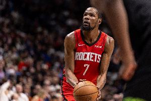 首節(jié)比賽,火箭球星杜蘭特表現(xiàn)出色,進(jìn)攻端火力全開(kāi),開(kāi)場(chǎng)就連拿10分,幾乎打滿12分鐘的情況下,投籃7中5,三分球4中2,罰球2中1,轟下13分2籃板2助攻1蓋帽的數(shù)據(jù),正負(fù)值+16。