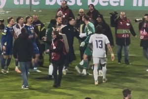點(diǎn)球大戰(zhàn)后,意大利國(guó)門多納魯馬疑似與波黑球員起了沖突,博努奇趕緊飛奔前去勸架,哲科也上前安慰,拉開了多納魯馬。