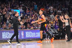 本場比賽,太陽先發(fā)為:布克、杰倫·格林、狄龍、吉萊斯皮、伊戈達羅。