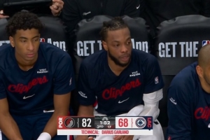 快船迎戰(zhàn)開拓者,第三節(jié)加蘭吃技犯,當時他被阿夫迪亞造犯規(guī),被換下還在抱怨,吃到技術(shù)犯規(guī)。