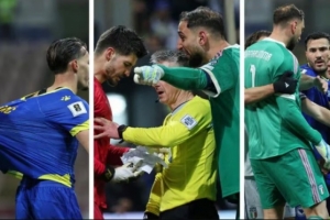 主裁不得不介入平息事態(tài),隨著點球大戰(zhàn)結(jié)束,波黑晉級世界杯,多納魯馬再次成為焦點,他與對方多名球員再次沖突,博努奇不得不迅速趕來現(xiàn)場將他拉開。