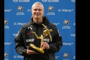 哈蘭德本屆歐洲世預賽打進16球,榮膺最佳射手,他在社交媒體上曬出手拿獎杯的照片,慶祝自己獲得這一獎項。