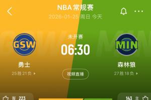 體育資訊01月25日訊 名記Shams報(bào)道,原定今日06:30進(jìn)行的,森林狼主場(chǎng)對(duì)陣勇士的比賽被延期至26日06:30。