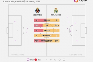 據(jù)Opta統(tǒng)計(jì),此役上半場(chǎng)比利亞雷亞爾射門4次、射正0次,據(jù)Opta統(tǒng)計(jì),皇馬是2026年五大聯(lián)賽唯一上半場(chǎng)還沒(méi)有被對(duì)手射正過(guò)的球隊(duì)。