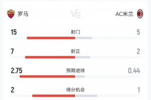 體育資訊1月26日訊 本輪意甲,羅馬1-1米蘭。雙方全場重點數(shù)據(jù)對比如下↓(主隊羅馬在前)