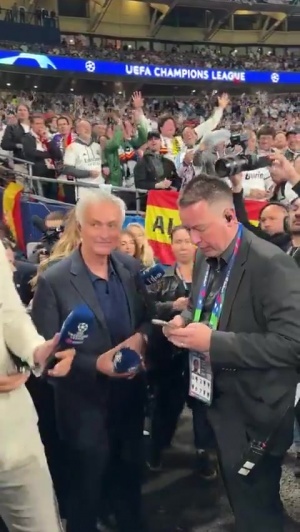 雖然你贏了我的主隊(duì)!穆帥場(chǎng)邊采訪 一旁皇馬球迷高唱穆里尼奧之歌