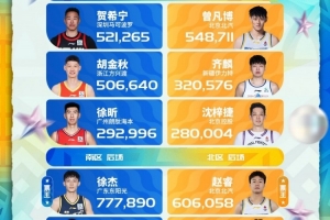 體育資訊1月19日訊 CBA官方發(fā)布了2026CBA全明星賽首發(fā)球員票選第二周票數(shù)情況。徐杰當(dāng)選第二周南區(qū)票王,趙睿當(dāng)選第二周北區(qū)票王。