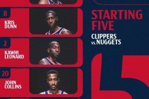 體育資訊1月31日訊 快船客場戰(zhàn)掘金,首發(fā)陣容出爐。