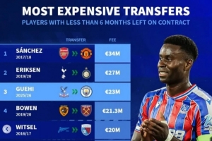 體育資訊1月20日訊 曼城已經(jīng)官宣引進(jìn)水晶宮中衛(wèi)格伊,《轉(zhuǎn)會(huì)市場(chǎng)》統(tǒng)計(jì)顯示他也是合同僅剩不到半年情況下的歷史第3貴球員。
