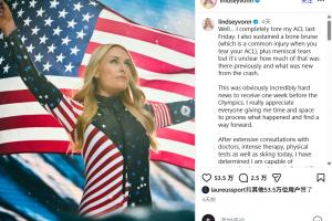 在上周林賽·沃恩剛剛遭遇了左膝前交叉韌帶撕裂的重傷,但她仍然選擇帶傷堅持參加本屆冬奧會。4天前,林賽·沃恩社媒發(fā)文,表示雖然自己受傷,但只要有一絲機會就不會放棄。