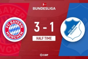 體育資訊2月9日訊 北京時(shí)間2月9日0點(diǎn)30分,德甲第21輪,拜仁慕尼黑在主場安聯(lián)競技場對陣霍芬海姆。上半場,迪亞斯造點(diǎn),阿克波古馬染紅,凱恩點(diǎn)射破門,阿斯拉尼頭球中框,諾伊爾失誤送禮,克拉馬里奇版平板比分,半場結(jié)束前迪亞斯再度造點(diǎn),凱恩點(diǎn)射雙響,迪亞斯補(bǔ)時(shí)自己打進(jìn)一球。上半場拜仁慕尼黑3-1霍芬海姆。
