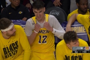 第三節(jié)進行到4分多鐘,拉拉維亞搶籃板領到個人第六次犯規(guī),被罰下。