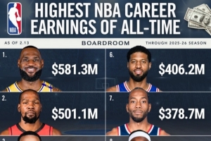 NBA 歷史生涯總薪資排行榜(數(shù)據(jù)截至2026年2月13日,涵蓋2025-26賽季)