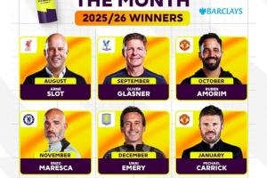 體育資訊02月14日訊 英超官方此前宣布,曼聯(lián)主帥卡里克當選英超一月最佳教練,英超也曬圖總結了本賽季目前為止的六位月最佳教練得主。六人分別是: