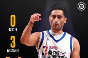 體育資訊02月14日訊 NBA全明星周末名人賽,名記Shams代表字母哥隊(duì)參賽,全場(chǎng)出戰(zhàn)21分鐘4投0中沒有得分,還出現(xiàn)3次失誤。