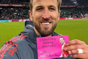 時(shí)值情人節(jié),拜仁官推也曬出了凱恩手持愛心卡片的互動(dòng)照,凱恩手持著一張印有表白的卡片:“拜仁球迷致凱恩:我們無法停止想念你!”其中,can還借用了凱恩Kane名字的諧音。