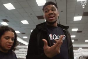 體育資訊2月17日訊 字母哥此前與妻子一同參加NBA的場外關(guān)懷活動,幫當(dāng)?shù)氐男殞殏儾少徫镔Y。