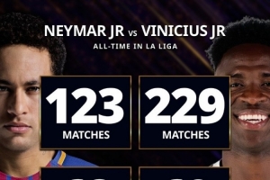 內(nèi)馬爾、維尼修斯西甲數(shù)據(jù):