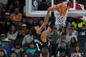 在第四節(jié)的比賽中,馬刺球星維克托·文班亞馬上演了交叉步突破后的側(cè)身滑翔雙手風(fēng)車(chē)暴扣。對(duì)此,耐克官方發(fā)推稱(chēng)贊道:“裁判應(yīng)該吹他一個(gè)違反物理定律?!?/p>