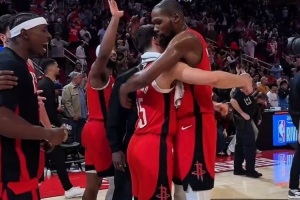 GIF-賽后杜蘭特?fù)肀еx潑德 拍拍腦袋 申京也來拍拍