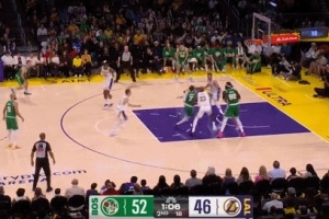 GIF-杰倫·布朗突破上籃被詹姆斯左手釘板大帽