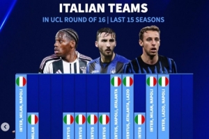 體育資訊2月26日訊 本輪歐冠附加賽,尤文加時憾負、國米被雙殺出局,亞特蘭大大逆轉晉級?!掇D會市場》也統(tǒng)計了近年歐冠16強的意甲球隊數(shù)量: