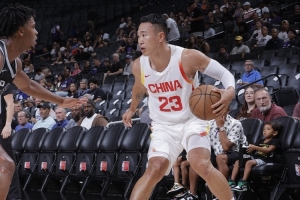 上半場(chǎng),中國男籃球員賀希寧表現(xiàn)中規(guī)中矩,命中了全隊(duì)第一個(gè)三分球,首發(fā)出戰(zhàn)7分鐘,投籃2中1均來自外線,罰球2中1,拿到4分1助攻的數(shù)據(jù)。