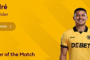 本場(chǎng)比賽狼隊(duì)球員安德烈·特林達(dá)德打進(jìn)絕殺球,賽后他也當(dāng)選英超官方評(píng)選出的本場(chǎng)最佳球員。