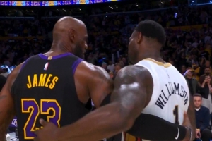 GIF-錫安和老詹擁抱聊一聊~?。?/p>