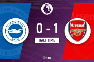 上半場補時3分鐘。半場戰(zhàn)罷,布萊頓0-1阿森納。