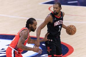 本賽季至今倫納德出戰(zhàn)了48場比賽,場均出戰(zhàn)32.4分鐘,得到27.9分6.4板3.7助2斷,投籃命中率49.7%;KD出戰(zhàn)了59場比賽,場均36.7分鐘,得到26.1分5.5板4.5助0.9斷,投籃命中率50.9%。