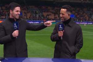 體育資訊01月22日訊 歐冠3-1客勝國米賽后,阿森納主帥阿爾特塔在評述席與沃爾科特、魯尼互動。