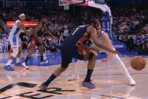 GIF-哈登持球被大瓦格納干擾出界,裁判吹魔術(shù)球權(quán),騎士挑戰(zhàn)成功,拿回球權(quán)