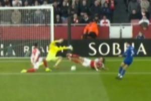 比賽第17分鐘,恩迪亞耶的傳中被拉亞撲了一下,麥克尼爾門前的近距離補射被已經(jīng)倒地的卡拉菲奧里用一個非常奇怪的姿勢極限封堵了出來!