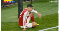 比賽第42分鐘,加納開出埃弗頓的前場定位球,拉亞出擊時不慎給了薩利巴臉部一肘!后者一度倒地不起。