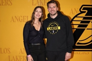 賽后,網(wǎng)壇名宿莎拉波娃和東契奇合影留念。