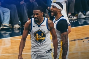 賽后勇士官方發(fā)布贏球海報,封面人物為梅爾頓和小佩頓。