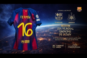 本場(chǎng)比賽,巴薩身披球衣的字體由安娜·威夫斯(Anna Vives)設(shè)計(jì),她是一名患有唐氏綜合征的女孩。