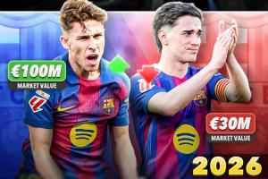 體育資訊03月21日訊 近日德轉(zhuǎn)更新了西甲球員身價(jià),巴薩中場(chǎng)費(fèi)爾明身價(jià)飆升到1億歐元,而加維則下跌到3000萬(wàn)歐元。