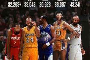 談到自己生涯總得分超越邁克爾·喬丹,上升至NBA歷史第五,杜蘭特笑著說(shuō)道:“我還有四人需要去超越?!?/p>