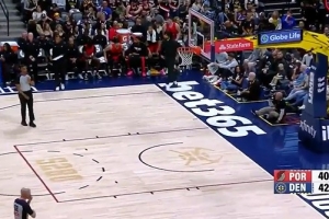 第一節(jié),雙方大打?qū)?,掘金三?4中7轟下42分,卡梅隆·約翰遜獨(dú)得14分,賈馬爾·穆雷貢獻(xiàn)13分;
