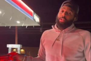 球迷在米切羅卡車上貼貼紙,貼紙內容為:“大卡車,小JJ”