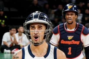 體育資訊1月25日訊 廣東外援薩姆納社媒更新,曬出了一張自己和奎因身穿護(hù)具打球的P圖。