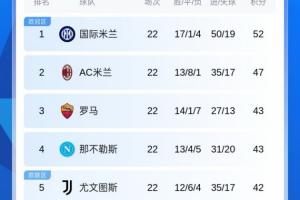 目前國米52分第一,米蘭近5輪3平,目前他們47分第二。羅馬、那不勒斯43分排名第三和第四。