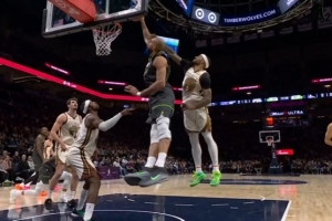 GIF-戈貝爾前場板暴扣2+1